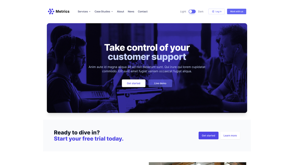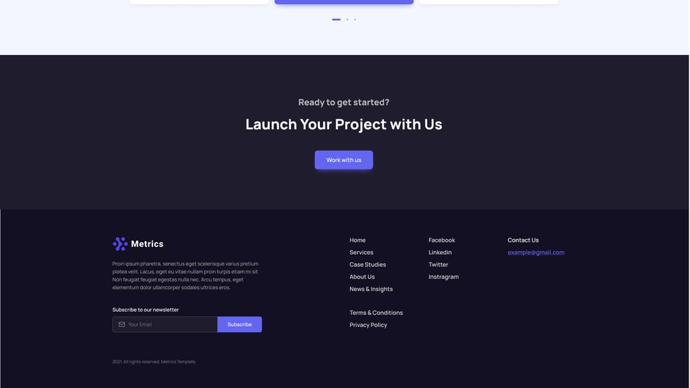 Metrics is a website UI Kit for the IT Company, designed with clean and modern design. Suitable for all businesses or startups that. The most important thing is modifying our product/template is simple.